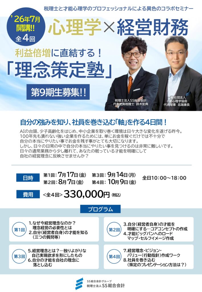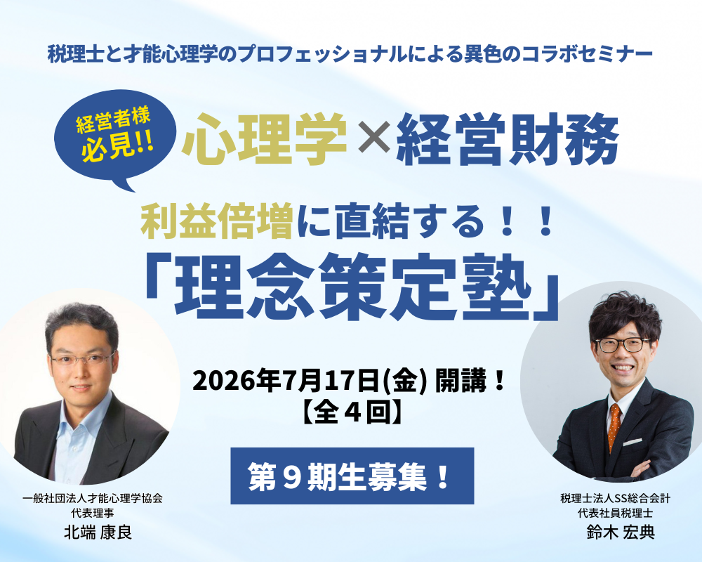 【全4回|2026年7月開講!】心理学×経営財務 利益倍増に直結する!「理念策定塾」第9期生募集中!